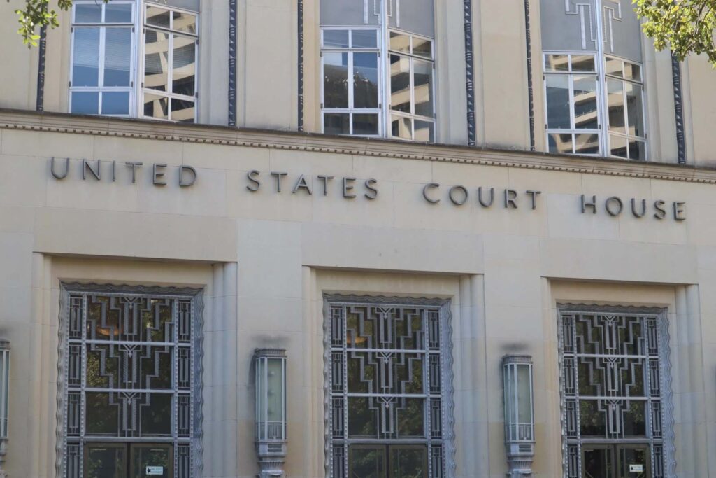 The Eldon B. Mahon United States Courthouse in downtown Fort Worth on Sept. 22, 2025. Hill and Evetts will stand trial here for terrorism charges, along with charges of attempted murder of federal officers and discharging a firearm during a crime of violence.