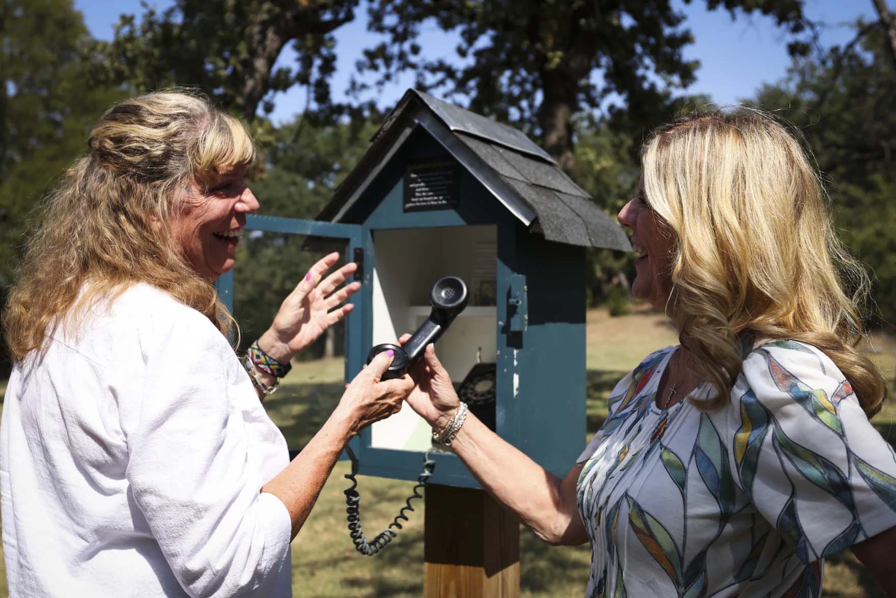 Julie Compton talks to her loved one on the wind phone Tuesday, Aug. 19, 2025, at Bowman Springs Park in Arlington.