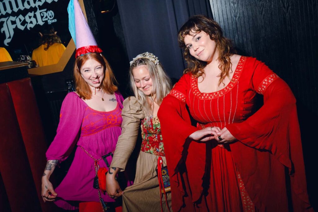 Alamo Drafthouse employees Kat Shober, Grace Svoboda and Francesca Graham dress in costume for the festival.