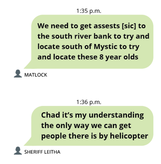 The text thread, which included Sheriff Larry Leitha, County Emergency Management Coordinator William “Dub” Thomas and other leaders from the office, shows confusion among those charged with responding to a devastating natural disaster. It appears to be the primary way Sheriff’s Office command staff communicated via text about the disaster — it’s unknown the extent of other discussions that happened in person or by phone.