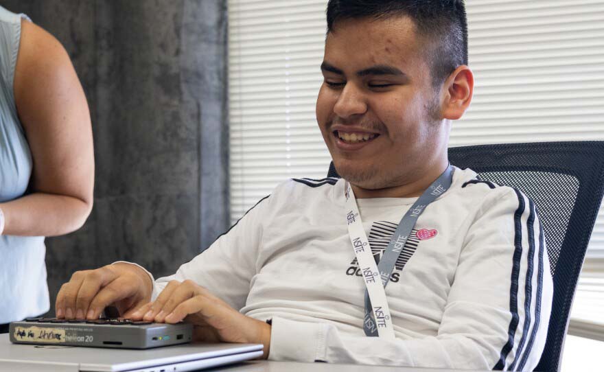 Abraham-Flores is now a 17-year-old junior at the Innovative, Technology, and Entrepreneurship program at Holmes High School. He’s also a mentor along with three other blind students.