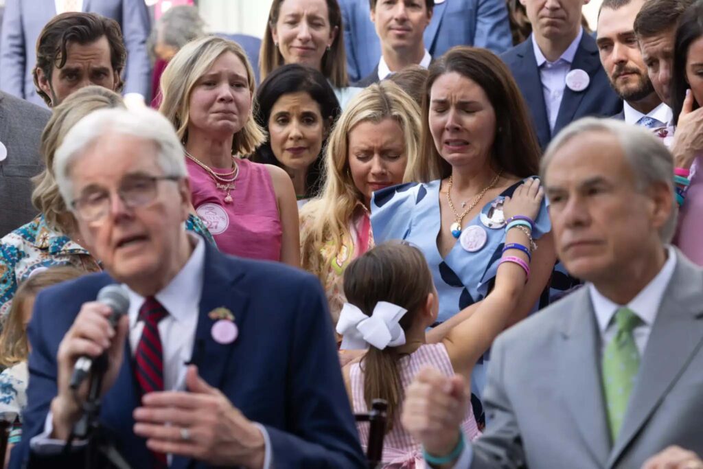 Families impacted by the July 4 floods in tears during a bill signing at the Governor’s Mansion on Friday, Sept. 5, 2025.