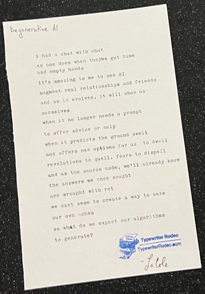 Typewriter Rodeo airs each Friday on Texas Standard. Send us your ideas for a poem on